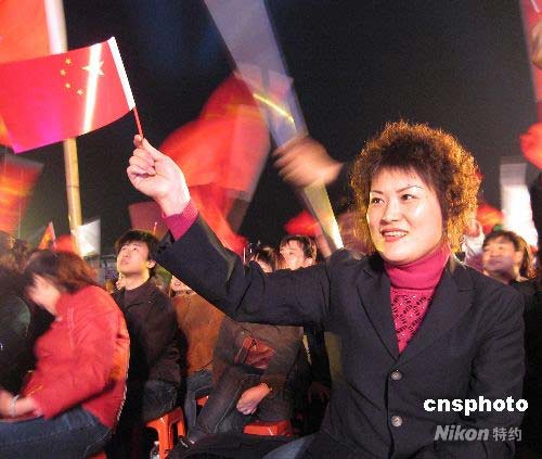 圖:秦皇島民眾山海關(guān)前歡慶奧運(yùn)倒計(jì)時(shí)一百天 (3)