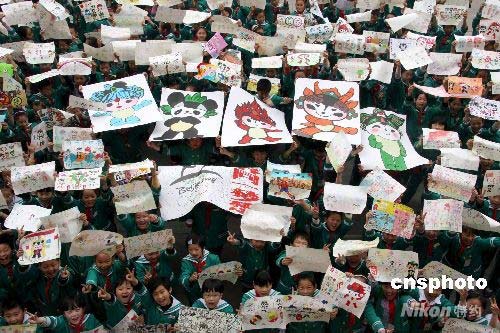 圖:山東棗莊千余名小學生同繪“慶奧圖”(2)