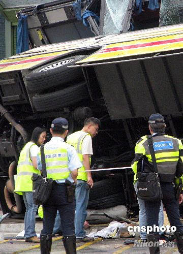 圖:香港發(fā)生嚴(yán)重車禍 一旅游巴士翻車(2)
