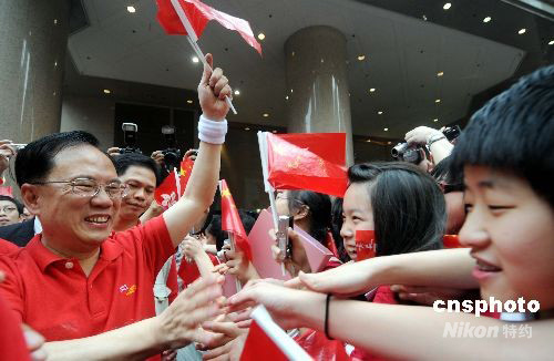 圖:香港特首曾蔭權(quán)為奧運加油 (2)
