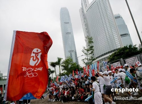 圖:香港民眾揮舞紅旗高喊“中國加油”