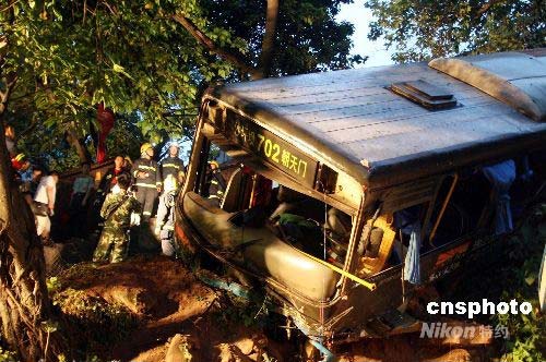 5月8日凌晨5時(shí)許,重慶主城一公交車墜橋沖下護(hù)坡,致車上14人受傷,其中10重傷,4人輕傷。據(jù)稱,事故車輛為牌號(hào)渝A25732的702路公交車,事故發(fā)生時(shí),該車輛正由渝中區(qū)駛往江北區(qū)方向,途徑嘉陵江大橋北橋頭時(shí),沖下10米高的護(hù)坡。事故公交車線路是由重慶市朝天門駛往沙坪壩區(qū),途中不經(jīng)過(guò)江北區(qū),該車輛屬于跨線運(yùn)營(yíng)。中新社發(fā) 郭晉嘉 攝