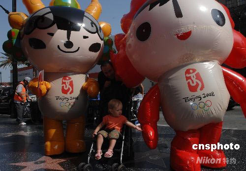 一名洛杉磯幼童被奧運福娃深深吸引。中新社發(fā) 張煒 攝