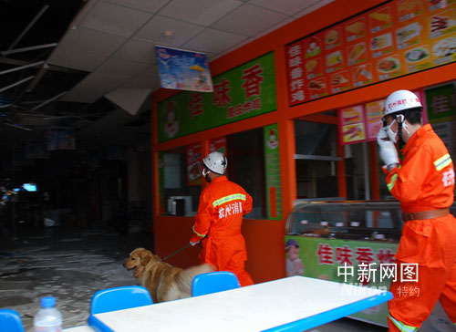 今天,浙江消防搶險救援隊進行四川地震災(zāi)區(qū)現(xiàn)場,圖為搶險救援隊帶領(lǐng)搜救犬進入現(xiàn)場搜救。作 者:李玉飛