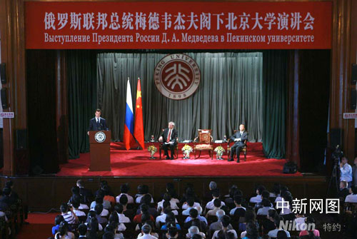 圖:梅德韋杰夫在北京大學發(fā)表演講(2)