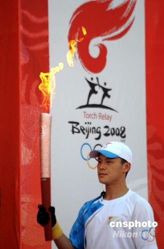 圖:端正的奧運(yùn)圣火護(hù)衛(wèi)