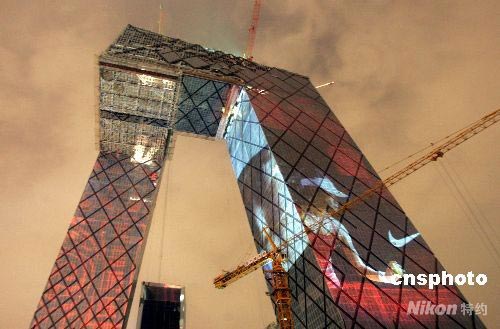 圖:巨型投影扮靚央視新址 體育精神鼓舞中國加油 (3)