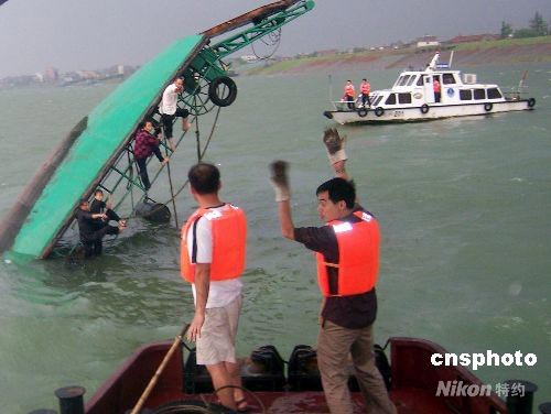 2008年6月4日,據(jù)湖北枝江市海事局(處)消息,6月3日18時20分,長江中游干線湖北枝江段突發(fā)強風暴并伴暴雨冰雹,造成在枝江市五碼頭附近水域的一條客渡船和一條漁船翻沉,16人落水,9人獲救,7人失蹤。另據(jù)枝江市政府稱,此次強風暴造成枝江市馬家店、百里洲、仙女、董市4個鄉(xiāng)鎮(zhèn)電力中斷,江面風力達10級,20分鐘左右降雨達37毫米,冰雹最大直徑9毫米;枝江城區(qū)部分電線桿被刮倒,枝江全城停電。目前,枝江海事部門仍在全力搜救失蹤人員。中新社發(fā) 劉君鳳 攝