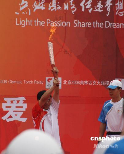 圖為高舉“祥云”火炬的火炬手。 中新社發(fā) 郭國(guó)權(quán) 攝