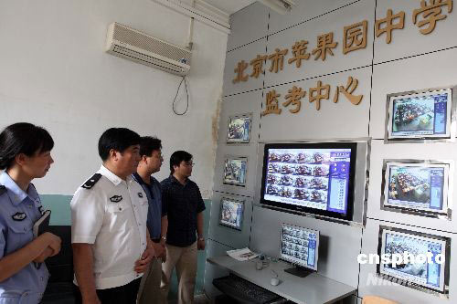 六月五日,全國高考前,北京石景山警方在轄區(qū)內(nèi)對保管2008年高考試卷及考場等公共設施進行安全檢查,以確保今年高考順利安全進行。中新社發(fā) 任海霞 攝