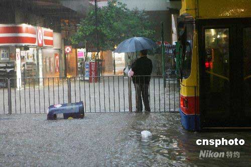 圖:香港遭遇黑色暴雨 街道變澤國(2)