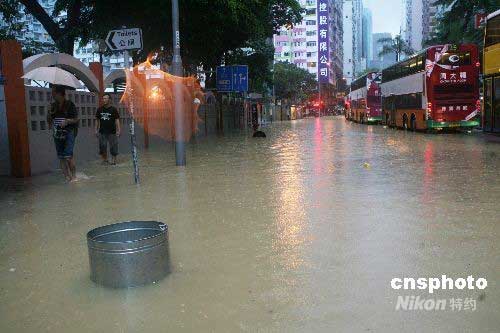 圖:香港遭遇黑色暴雨 街道變澤國(guó)(3)
