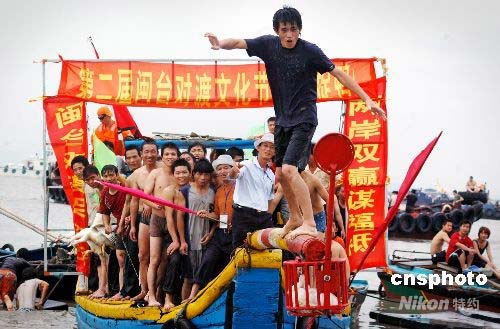 六月八日,是中華民族古老的傳統(tǒng)節(jié)日端午節(jié),僑鄉(xiāng)石獅人延續(xù)閩臺對渡文化習(xí)俗,舉辦第二屆閩臺對渡文化節(jié)暨蚶江海上潑水節(jié),成為兩岸人民交融情誼的獨(dú)特方式。中新社發(fā) 傅丹丹 攝
