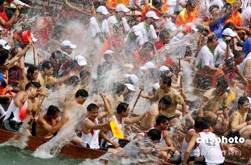 國際龍舟錦標(biāo)賽慶祝端午佳節(jié) 眾人打水仗