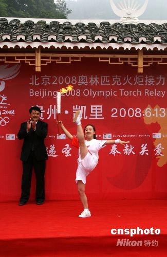 圖:奧運(yùn)火炬黔東南首棒"特色傳遞"(2)