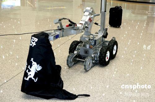 圖:北京海關(guān)奧運防爆演習利用機器人排險