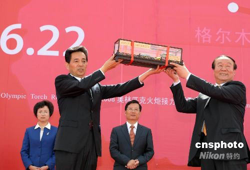 圖:格爾木市委向北京奧組委贈(zèng)送昆侖玉如意