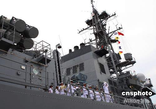 日本艦艇抵達(dá)湛江軍港時奏樂行禮