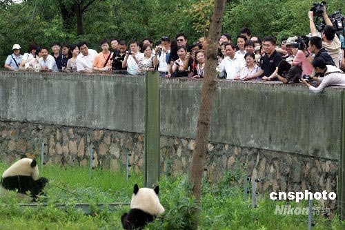 6月25日上午,臺(tái)北市長郝龍斌一行到上海野生動(dòng)物園,看望大熊貓。中新社發(fā) 潘索菲 攝