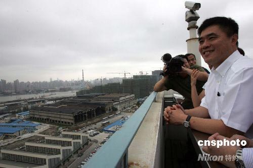 6月26日,臺(tái)北市市長(zhǎng)郝龍斌在滬考察正在建造中的上海世博會(huì)參展場(chǎng)址、了解世博會(huì)籌備情形,并俯瞰建造中的上海世博會(huì)全景。中新社發(fā) 潘索菲 攝