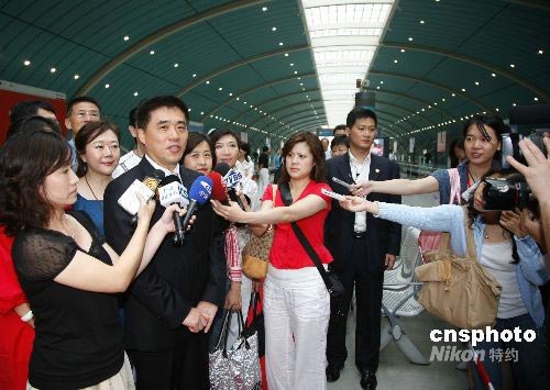 6月27日下午,臺北市長郝龍斌結(jié)束在上海的訪問,搭乘磁浮列車赴浦東國際機場返臺。郝龍斌向記者表示,此次上海之行很好,相信臺北與上海一定會雙贏。中新社發(fā) 潘索菲 攝