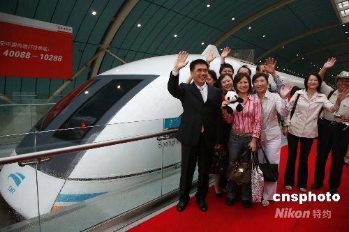 6月27日下午,臺北市長郝龍斌在上海乘磁浮列車,赴浦東國際機(jī)場,搭乘東航MU507航班返臺,結(jié)束在上海為期5天的訪問。中新社發(fā) 潘索菲 攝