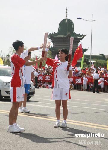 圖:奧運(yùn)火炬在寧夏吳忠傳遞(4)
