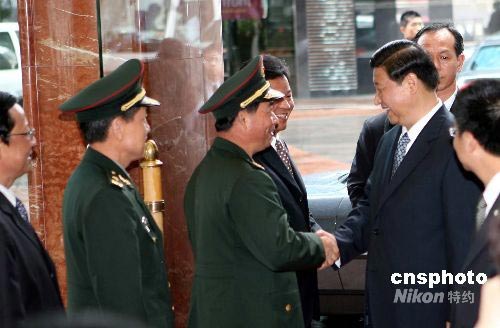 七月六日,中國國家副主席習(xí)近平抵達(dá)香港下榻海逸酒店。習(xí)近平副主席是應(yīng)香港特別行政區(qū)行政長官曾蔭權(quán)的邀請,赴港檢查奧運(yùn)馬術(shù)籌備工作并視察香港特區(qū)。中新社發(fā) 洪少葵 攝