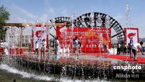 圖:奧運火炬蘭州傳遞在"水車博覽園"結束