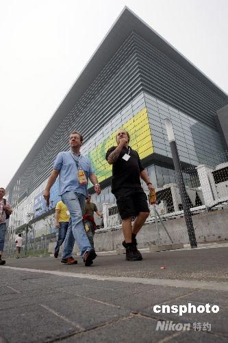 圖:記者走過北京奧運(yùn)會國際廣播中心