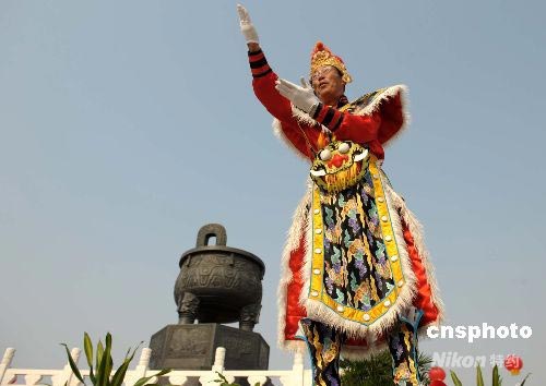 圖:內(nèi)蒙古民族樂隊(duì)指揮盛裝迎"祥云"