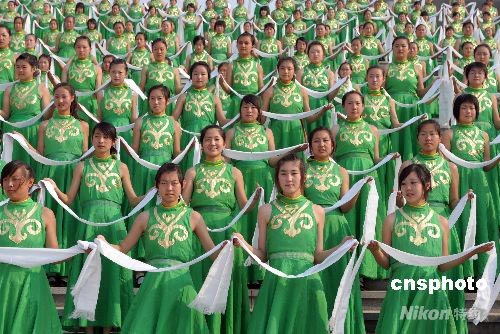 圖:內(nèi)蒙少女著盛裝迎接奧運火炬