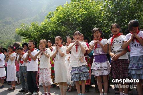 圖:災(zāi)區(qū)孩子高唱感恩的心