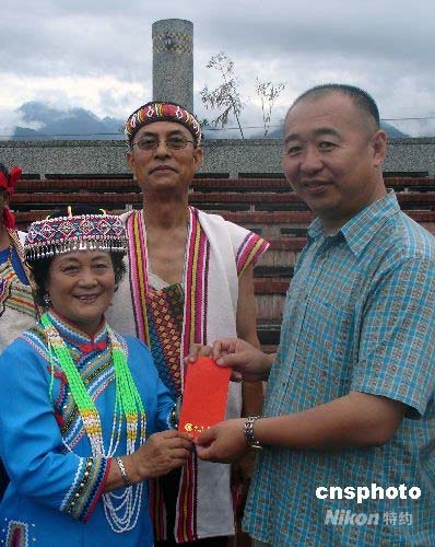圖:大陸首發(fā)團(tuán)向臺(tái)灣少數(shù)民族同胞贈(zèng)紅包