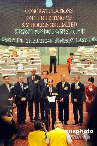 七月十六日,澳門(mén)博彩控股有限公司在香港港交所掛牌上市,澳博主席及執(zhí)行董事何鴻燊在上市儀式上致辭。中新社發(fā) 鄧慶樂(lè) 攝