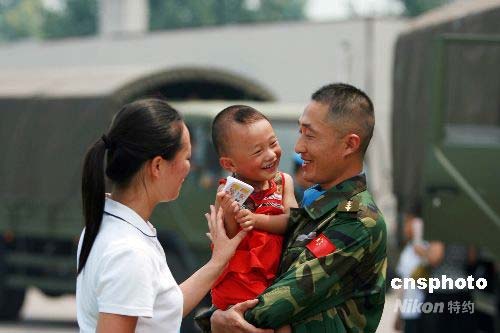 7月16日晚9時(shí)30分,中國(guó)首批赴達(dá)爾富爾維和工兵分隊(duì)后續(xù)人員172人從新鄭國(guó)際機(jī)場(chǎng)出征,飛赴達(dá)爾富爾維和任務(wù)區(qū)。后續(xù)官兵部署到位后,中國(guó)赴達(dá)爾富爾維和工兵分隊(duì)將成為第一支整建制部署該地區(qū)的聯(lián)合國(guó)維和部隊(duì)。中國(guó)首批赴蘇丹達(dá)爾富爾維和多功能工兵分隊(duì)于2007年8月9日正式組建,編制315人,官兵主要來(lái)自濟(jì)南軍區(qū)和北京軍區(qū),編配各類大型裝備225臺(tái)輛。中新社發(fā) 楊洪武 攝