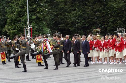 圖:俄羅斯代表團(tuán)向無(wú)名烈士墓敬獻(xiàn)花籃