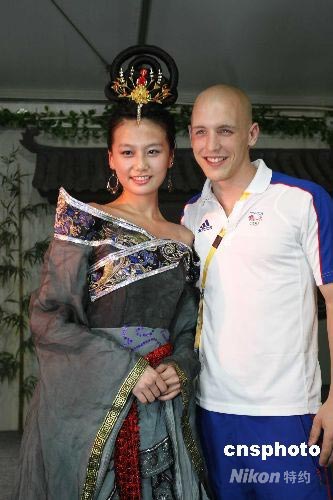 圖:英國運動員和身著古裝的中國美女合影