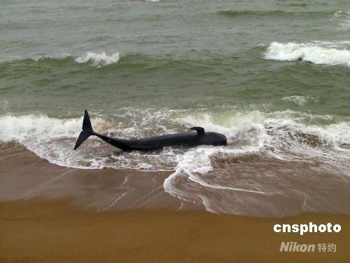 2008年8月7日,一只鯨魚擱淺博鰲玉帶灘。這張由海南博鰲邊防派出所提供的照片顯示,當(dāng)天上午八時(shí)許,這只長(zhǎng)約2米,重1000多斤不明種類的鯨魚擱淺博鰲玉帶灘,離出?诩s200米遠(yuǎn)的海灘邊,邊防派出所和瓊海漁政部門接報(bào)后立即派員前往救助。同在博鰲萬(wàn)泉河出?冢2005年5月2日,一只重約300多斤的鯨魚受傷擱淺岸邊,經(jīng)搶救無(wú)效死亡。當(dāng)?shù)貪O民認(rèn)為,鯨魚擱淺常與大風(fēng)暴有關(guān)。中新社發(fā) 蒙鐘德 攝