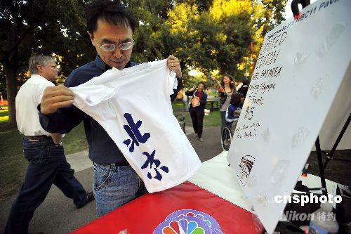 圖:美國(guó)華人搶購(gòu)限量發(fā)售的奧運(yùn)T恤衫