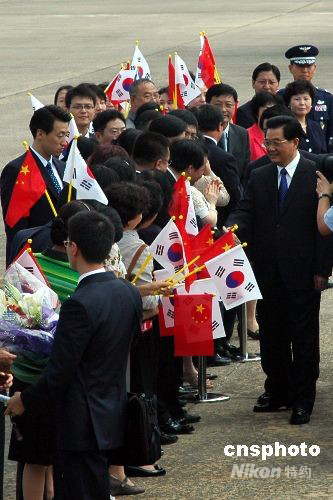 圖:胡錦濤抵達(dá)首爾開始訪問韓國