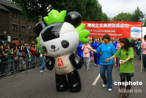 當(dāng)?shù)貢r(shí)間25日,歐洲最大規(guī)模的街頭文化藝術(shù)節(jié)——一年一度的英國(guó)諾丁山狂歡節(jié)在倫敦舉行。今年的狂歡節(jié)上,當(dāng)?shù)厝A人團(tuán)體的盛裝隊(duì)伍打出“英國(guó)華人慶祝北京奧運(yùn)圓滿(mǎn)成功”的橫幅,在福娃的帶領(lǐng)下走在狂歡節(jié)所有隊(duì)伍的最前面。