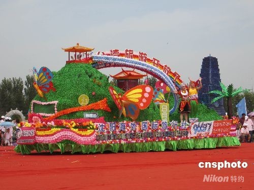 8月30日,由國家旅游局、遼寧省政府主辦的2008中國沈陽國際旅游節(jié)開幕,開幕式上舉辦了國內(nèi)外花車巡游。中新社發(fā) 沈殿成 攝