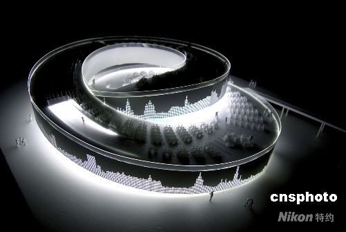 9月10日,上海世博會丹麥館設(shè)計方案揭開神秘面紗,該館總占地面積三千平方米,由兩個環(huán)形軌道構(gòu)成,主題定為“幸福生活,童話樂園”。中新社發(fā) 李佳佳 攝