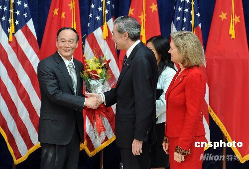當?shù)貢r間九月十六日上午,第十九屆中美商貿(mào)聯(lián)委會在美國加州約巴琳達市的“尼克松圖書館與誕生地基金會”舉行。中國國務(wù)院副總理王岐山和美國商務(wù)部長古鐵雷斯、貿(mào)易代表施瓦布共同主持此次會議,兩國政府相關(guān)部門官員參加會議。圖為古鐵雷斯(右二)、施瓦布(右一)在尼克松圖書館門廳歡迎王岐山一行。中新社發(fā) 張煒 攝