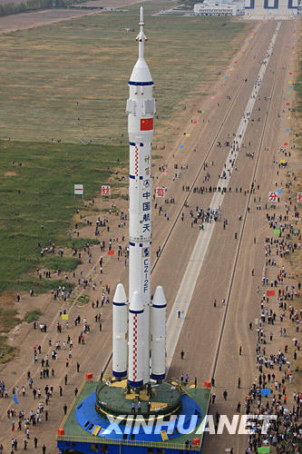 9月20日,神七載人飛船、長(zhǎng)征二號(hào)F運(yùn)載火箭和逃逸塔組合體,順利垂直轉(zhuǎn)運(yùn)至發(fā)射區(qū),標(biāo)志著神七任務(wù)已進(jìn)入最后的發(fā)射準(zhǔn)備階段。