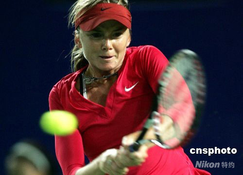 斯洛伐克美女選手漢圖楚娃以0比2不敵塞爾維亞選手揚科維奇,無緣四強。中新社發(fā) 富田 攝
