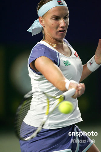 4號種子俄羅斯姑娘庫茲涅佐娃對陣中國金花鄭潔,最終庫茲涅佐娃以7-6/7-5戰(zhàn)勝鄭潔挺進決賽。中新社發(fā) 富田 攝