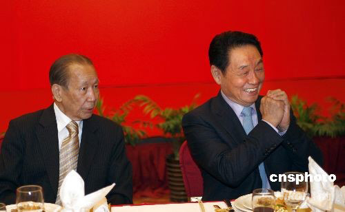圖為國(guó)務(wù)院僑辦原主任、中國(guó)僑商投資企業(yè)協(xié)會(huì)名譽(yù)會(huì)長(zhǎng)郭東坡(右)和東南亞知名僑領(lǐng)唐裕出席招待午宴。