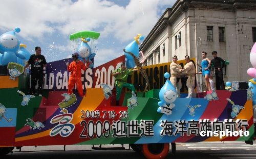 圖為臺(tái)灣高雄市布置的花車(chē)在為二00九年舉辦的世運(yùn)會(huì)做宣傳。中新社發(fā) 耿軍 攝